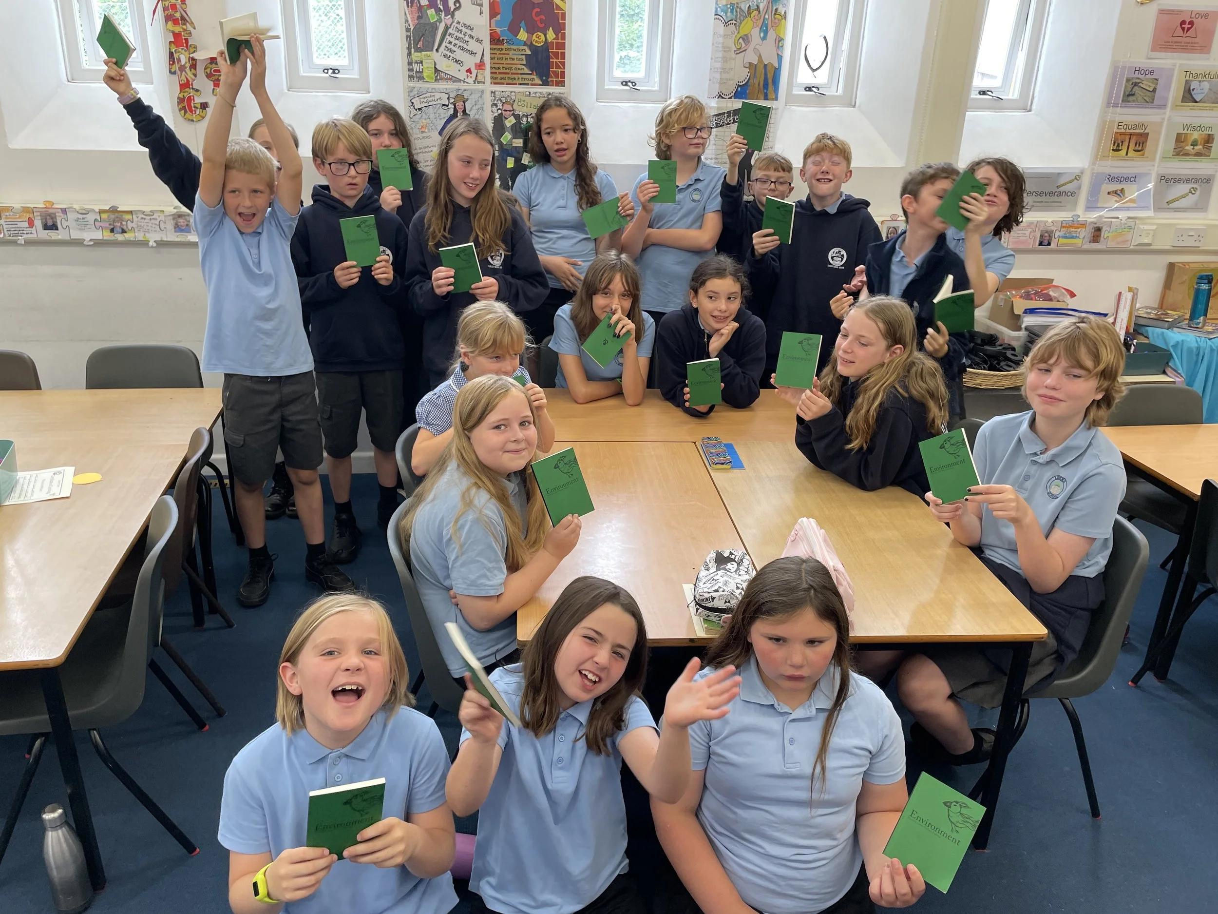 We were back in Loders Primary School this week to present the children with their copies of the latest in our whole-school poetry anthology series: ‘Environment’.