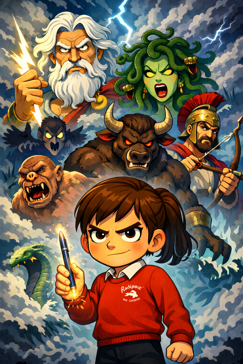 Gods, demi-gods, monsters, mortals, and thin skinned deities interfering in the affairs of humans. The themes and tropes of the classic greek tales were the starting point for our new story anthology project featuring a host of Year 6 writers from Radipole Primary School. Over three weeks, we created brand new myths that told epic tales, taught us how to behave, or explained away some area of baffling natural phenomena.