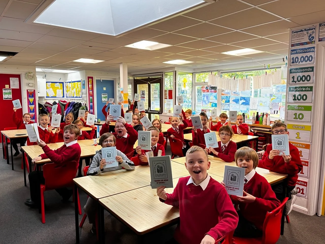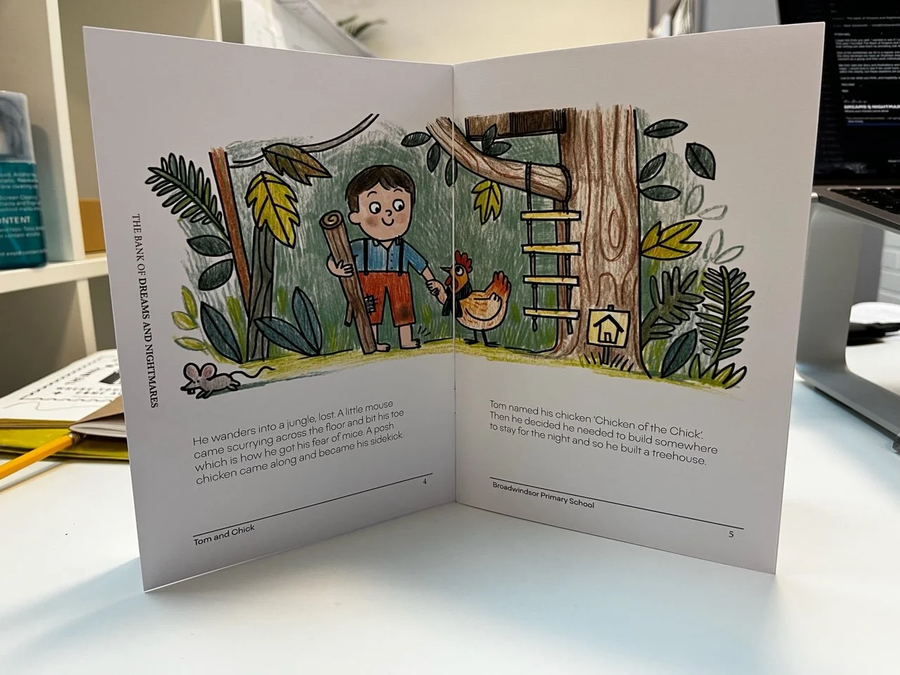 Following the design and print process, we delivered finished copies of the sensational book co-written by Year 3 & 4 pupils at Broadwindsor CE Primary School, making every single class member a published author!